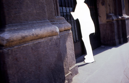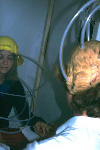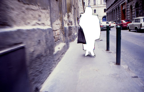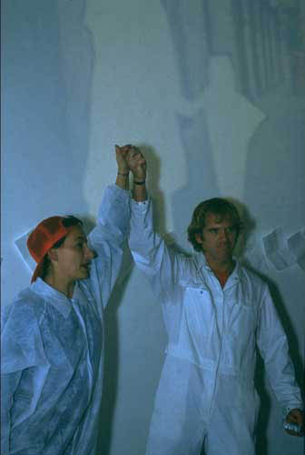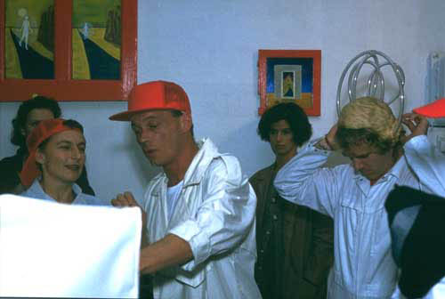 Gallery exhibition with a performance including the Body Of Light slide show, silhouette interaction, and incantation by Tim Pickerill. Followed by the Body of Light telepathy experiment. At Uff Galleria, Budapest, Hungary, 10/07/98